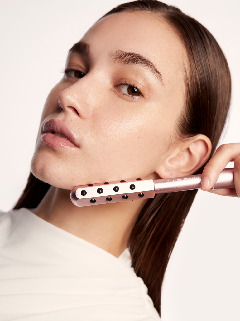2.Esculpe con Hexaroller™️: Esculpe las áreas deseadas durante 30 a 45 segundos con Hexaroller™️, nuestra herramienta de lifting diseñada para activar más de 40 músculos faciales, optimizando el drenaje linfático y mejorando visiblemente la elasticidad y circulación sanguínea.